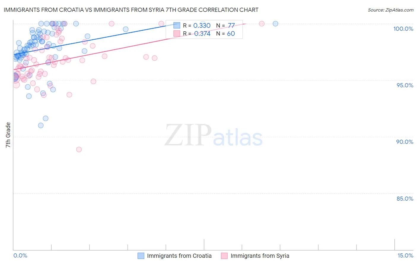 Immigrants from Croatia vs Immigrants from Syria 7th Grade Correlation Chart