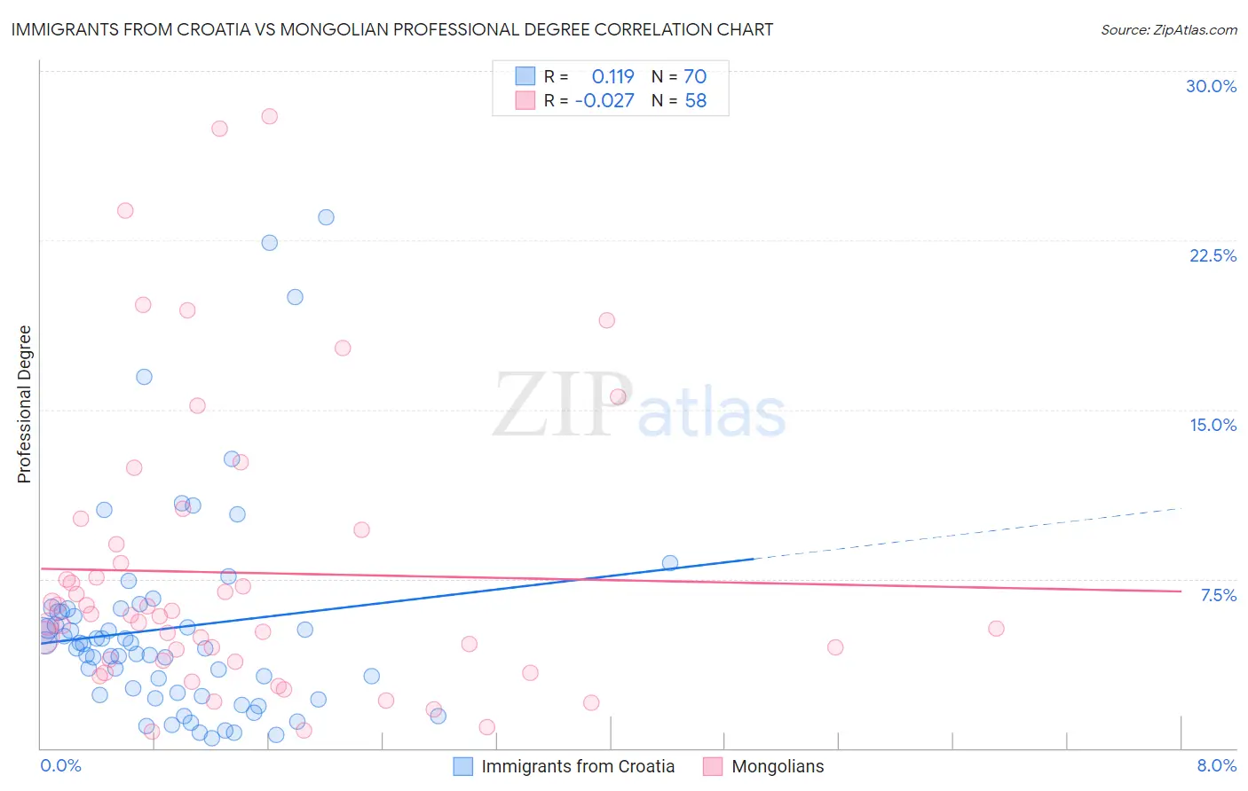 Immigrants from Croatia vs Mongolian Professional Degree Correlation Chart