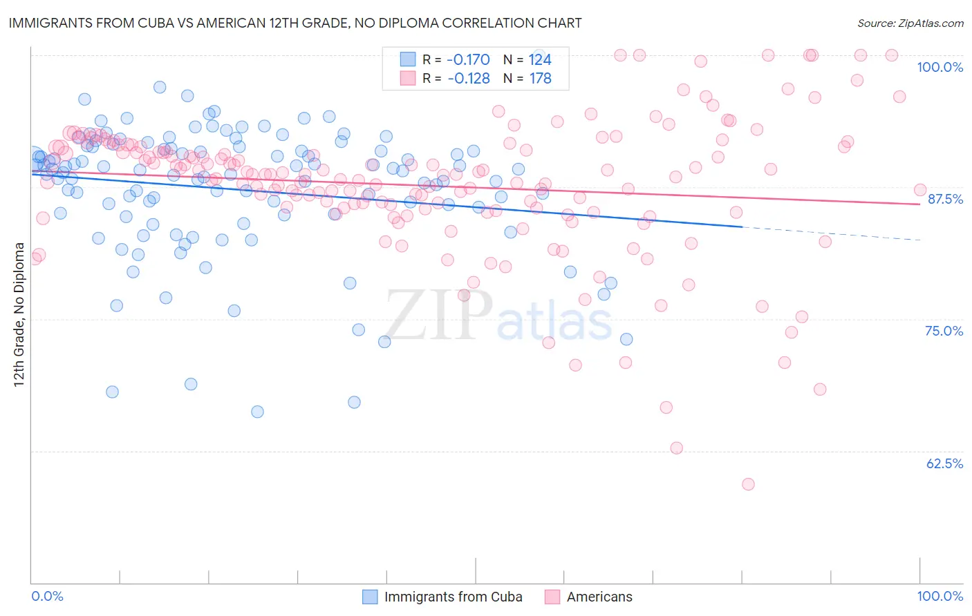 Immigrants from Cuba vs American 12th Grade, No Diploma
