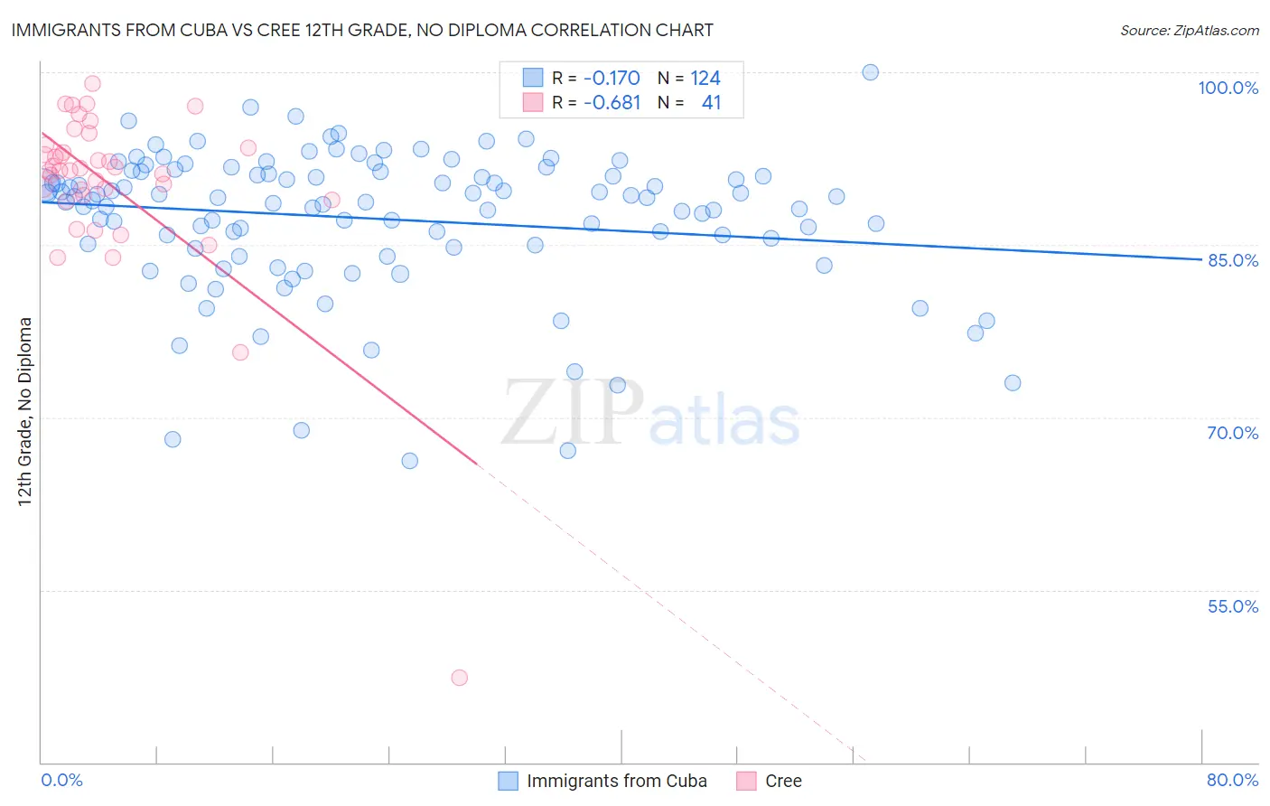 Immigrants from Cuba vs Cree 12th Grade, No Diploma Correlation Chart