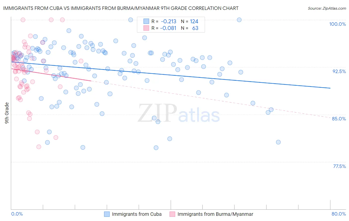 Immigrants from Cuba vs Immigrants from Burma/Myanmar 9th Grade Correlation Chart