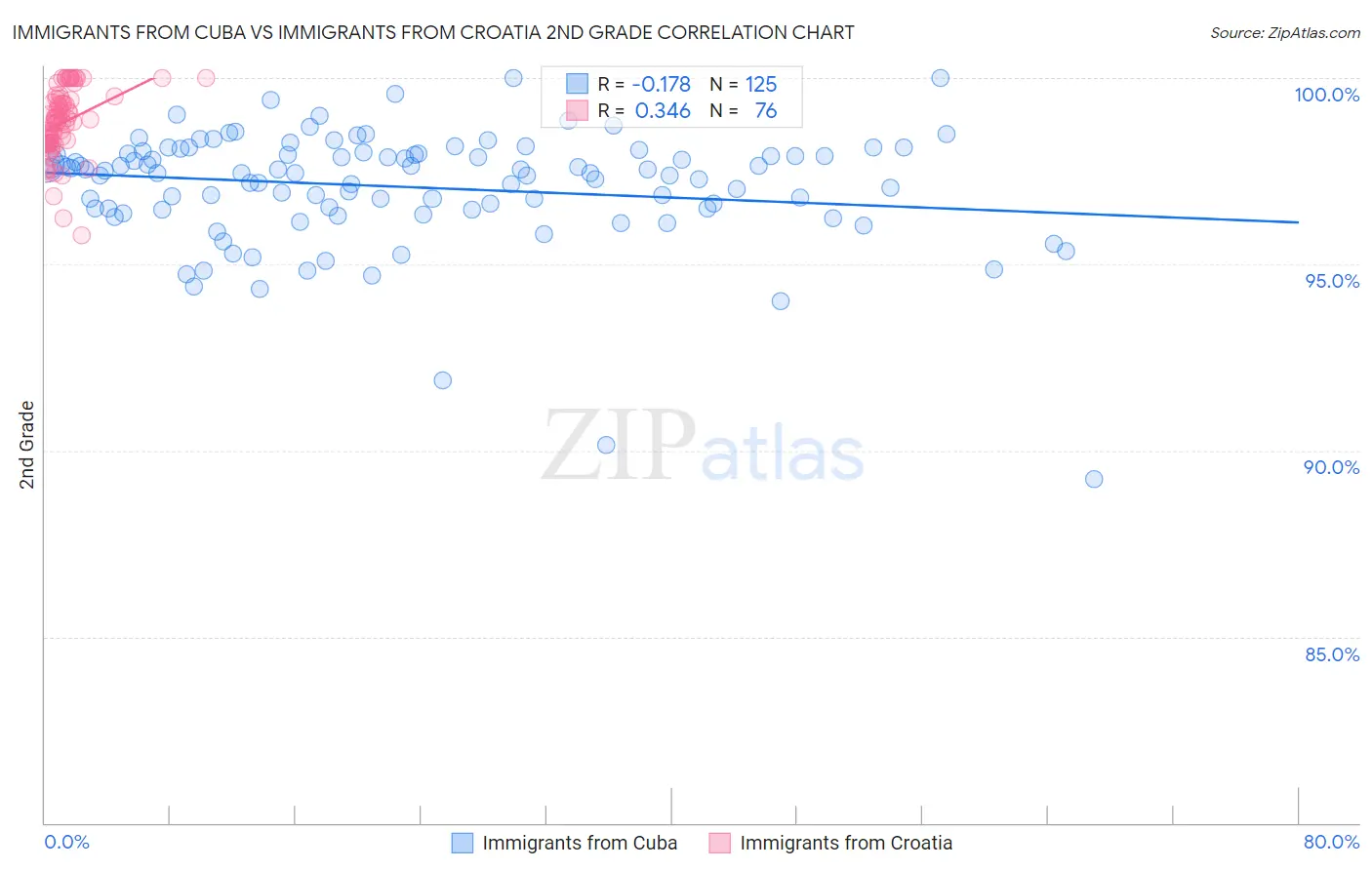 Immigrants from Cuba vs Immigrants from Croatia 2nd Grade Correlation Chart