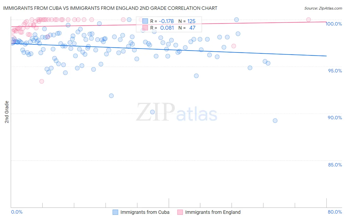Immigrants from Cuba vs Immigrants from England 2nd Grade Correlation Chart