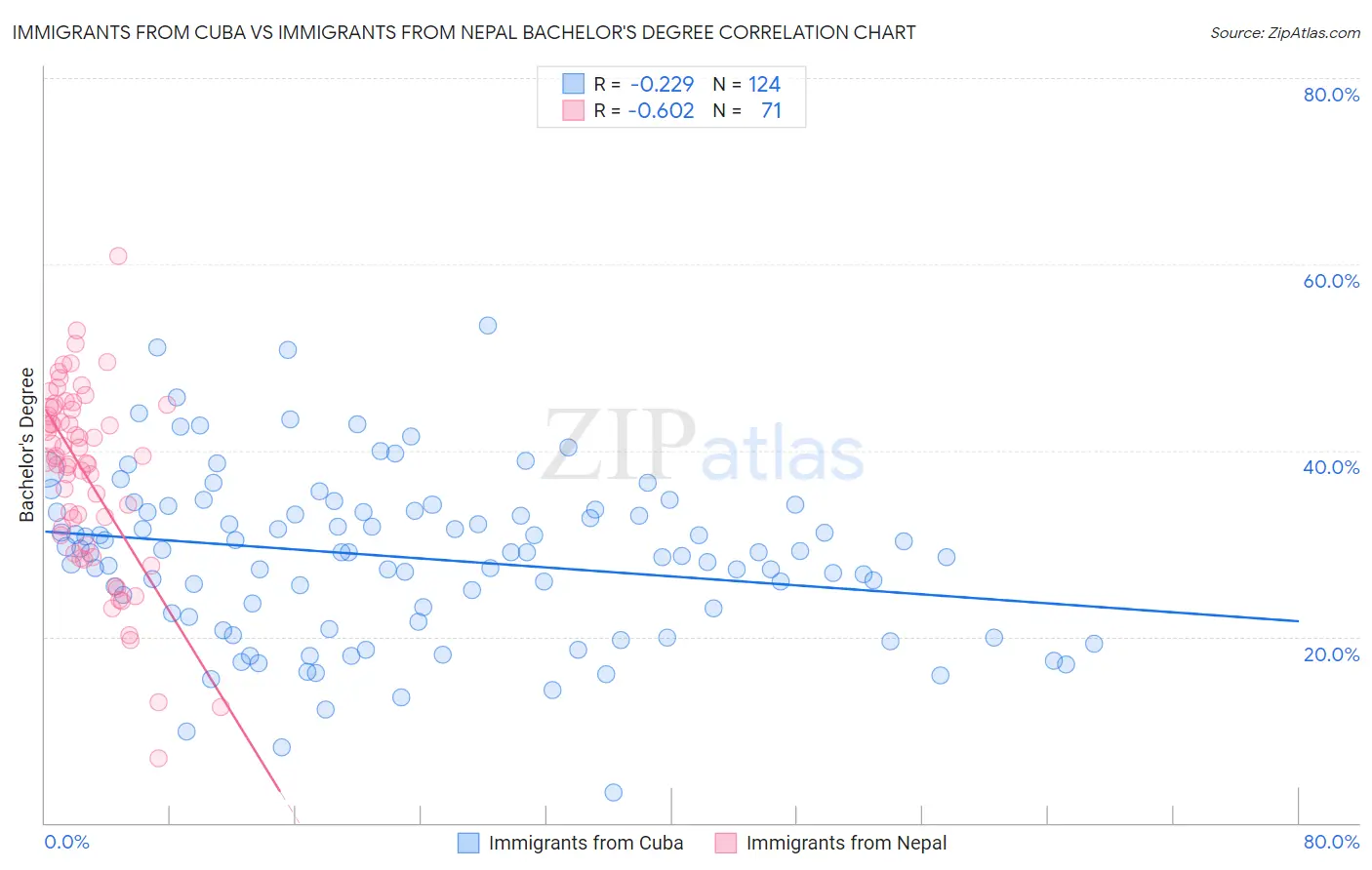 Immigrants from Cuba vs Immigrants from Nepal Bachelor's Degree