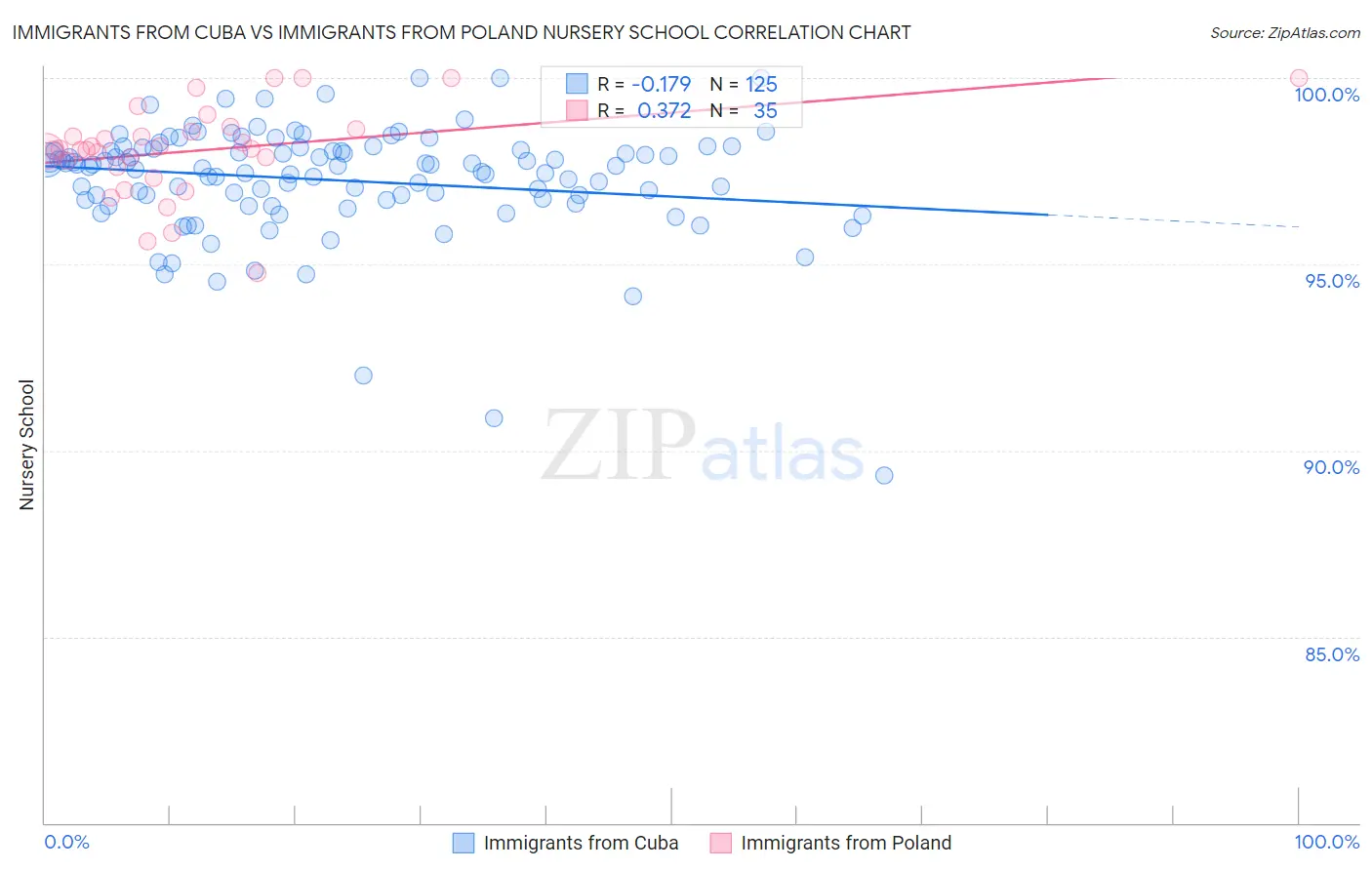 Immigrants from Cuba vs Immigrants from Poland Nursery School Correlation Chart