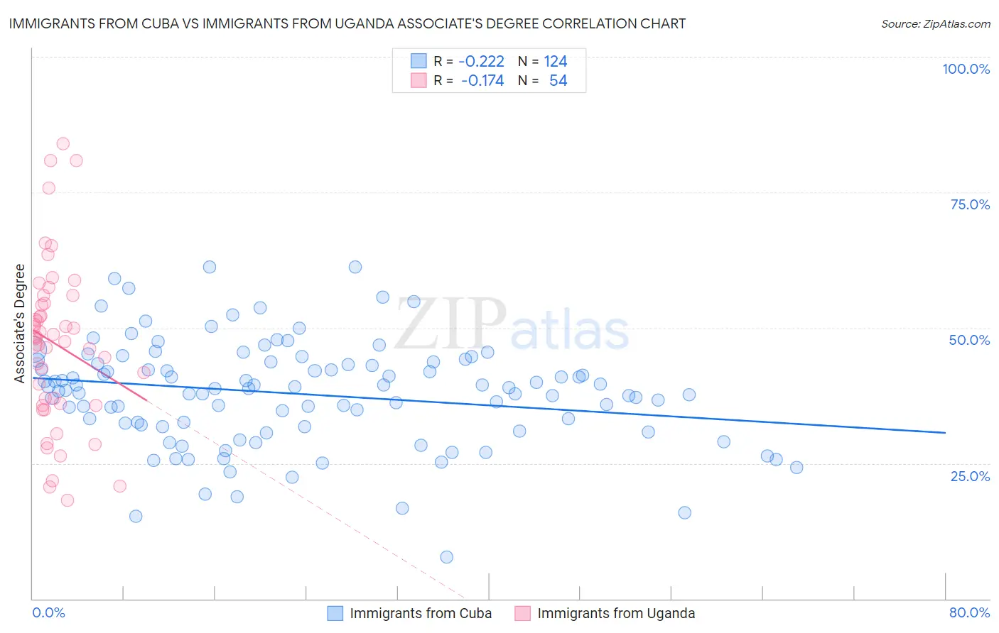 Immigrants from Cuba vs Immigrants from Uganda Associate's Degree Correlation Chart