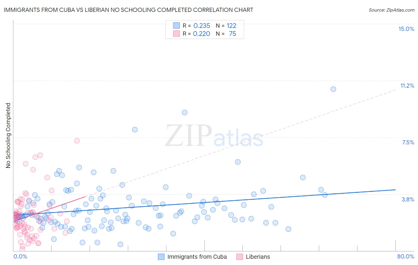 Immigrants from Cuba vs Liberian No Schooling Completed Correlation Chart