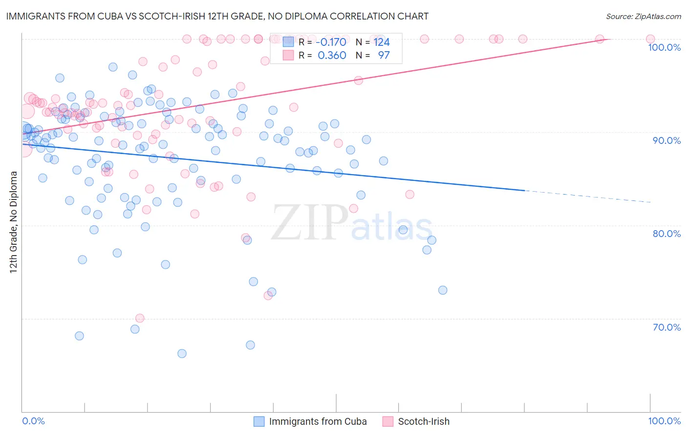 Immigrants from Cuba vs Scotch-Irish 12th Grade, No Diploma Correlation Chart