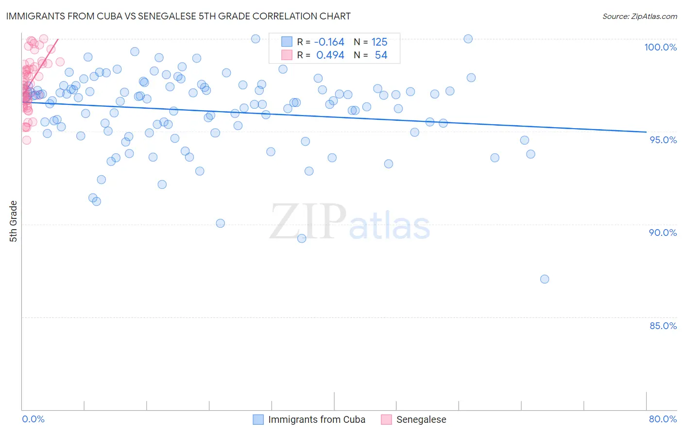 Immigrants from Cuba vs Senegalese 5th Grade Correlation Chart