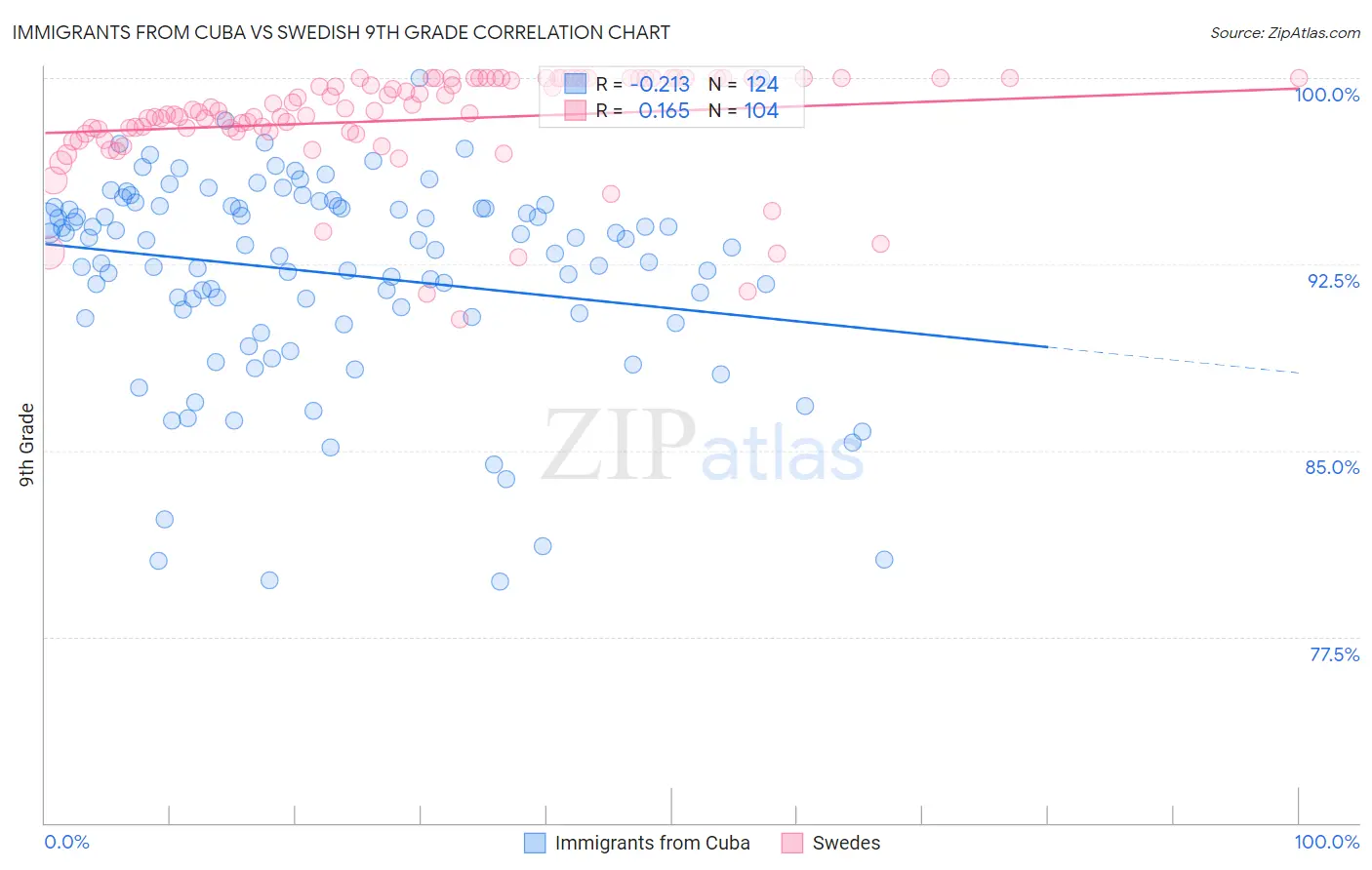Immigrants from Cuba vs Swedish 9th Grade Correlation Chart