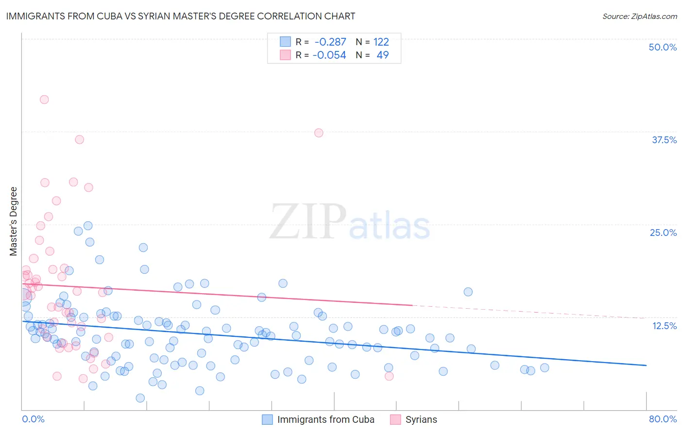 Immigrants from Cuba vs Syrian Master's Degree Correlation Chart