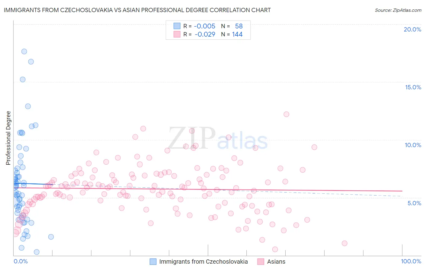 Immigrants from Czechoslovakia vs Asian Professional Degree Correlation Chart