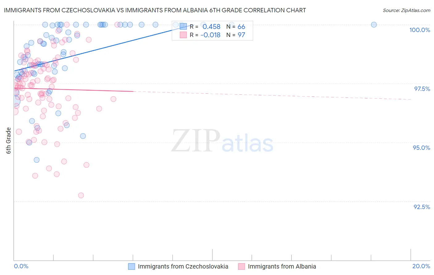 Immigrants from Czechoslovakia vs Immigrants from Albania 6th Grade Correlation Chart