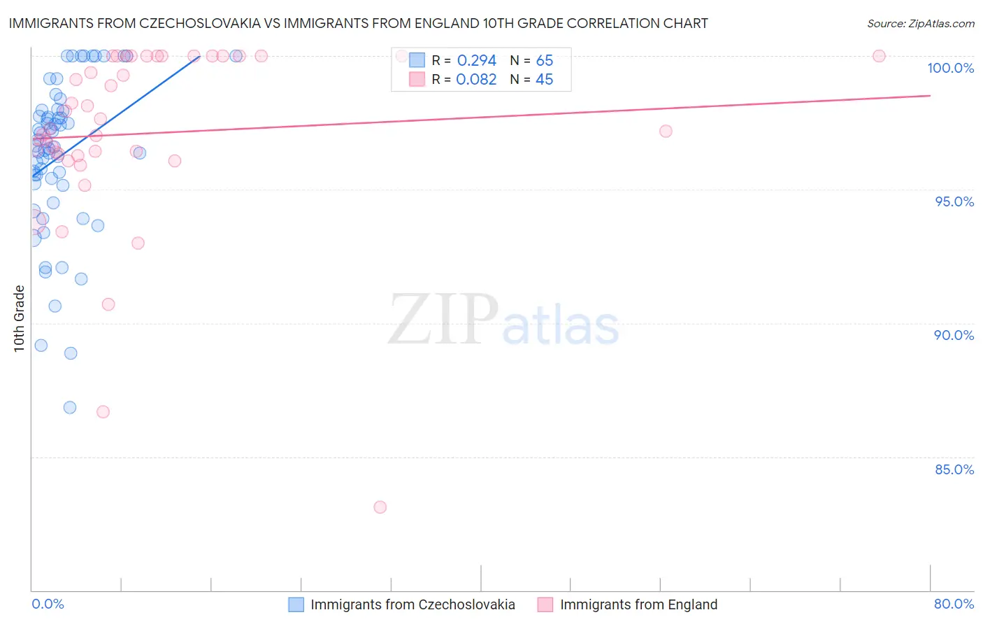 Immigrants from Czechoslovakia vs Immigrants from England 10th Grade Correlation Chart
