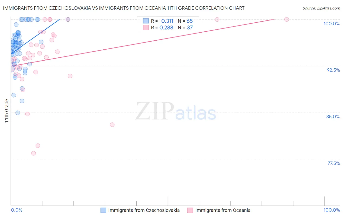 Immigrants from Czechoslovakia vs Immigrants from Oceania 11th Grade Correlation Chart