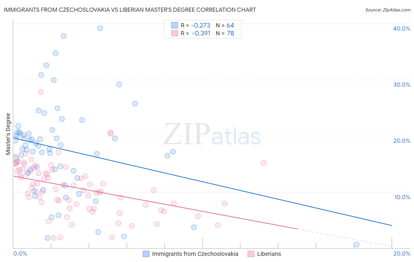 Immigrants from Czechoslovakia vs Liberian Master's Degree Correlation Chart