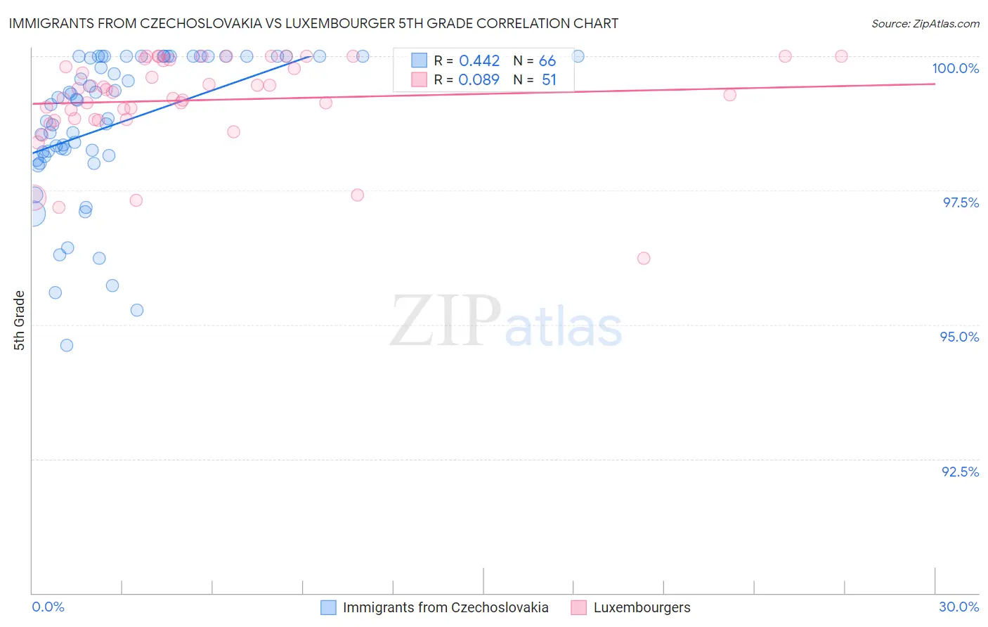 Immigrants from Czechoslovakia vs Luxembourger 5th Grade Correlation Chart
