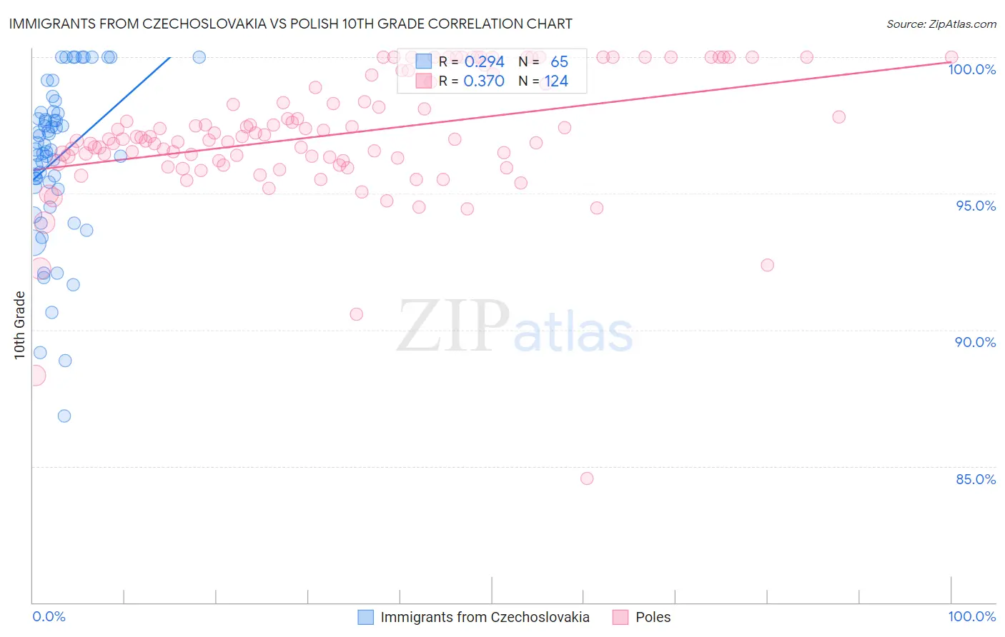 Immigrants from Czechoslovakia vs Polish 10th Grade Correlation Chart