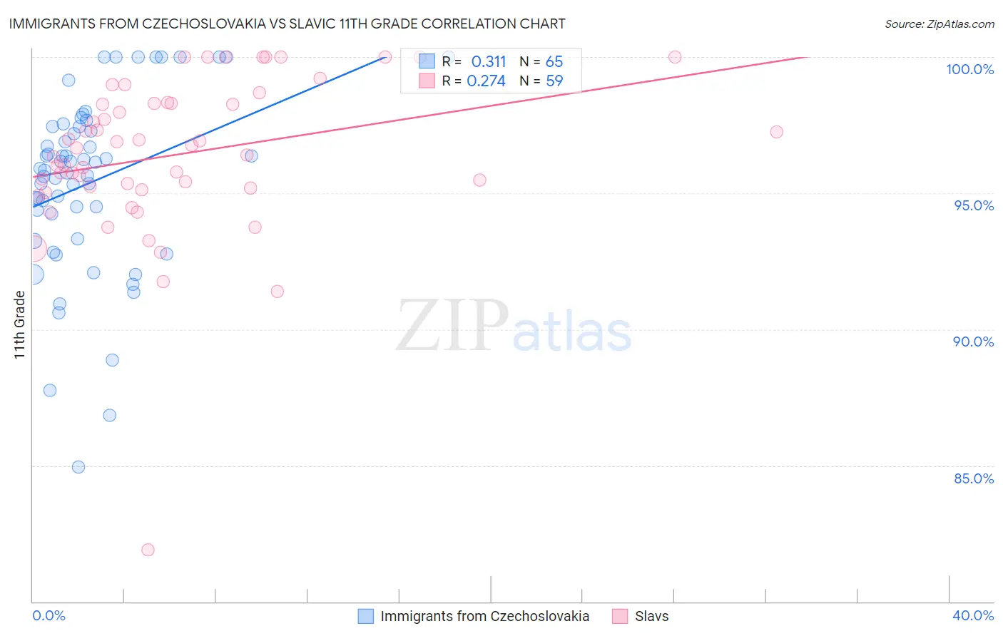 Immigrants from Czechoslovakia vs Slavic 11th Grade Correlation Chart