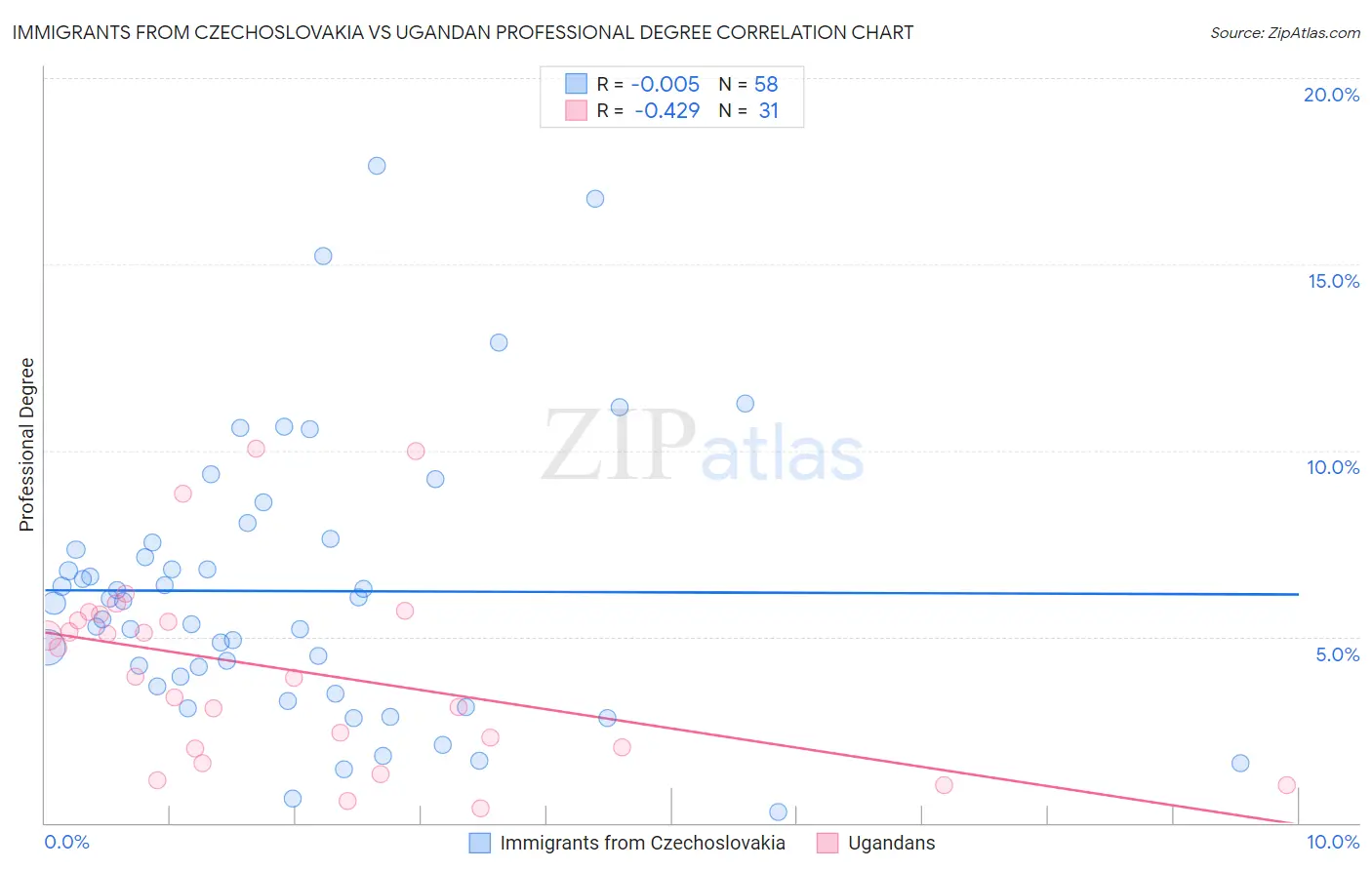 Immigrants from Czechoslovakia vs Ugandan Professional Degree Correlation Chart