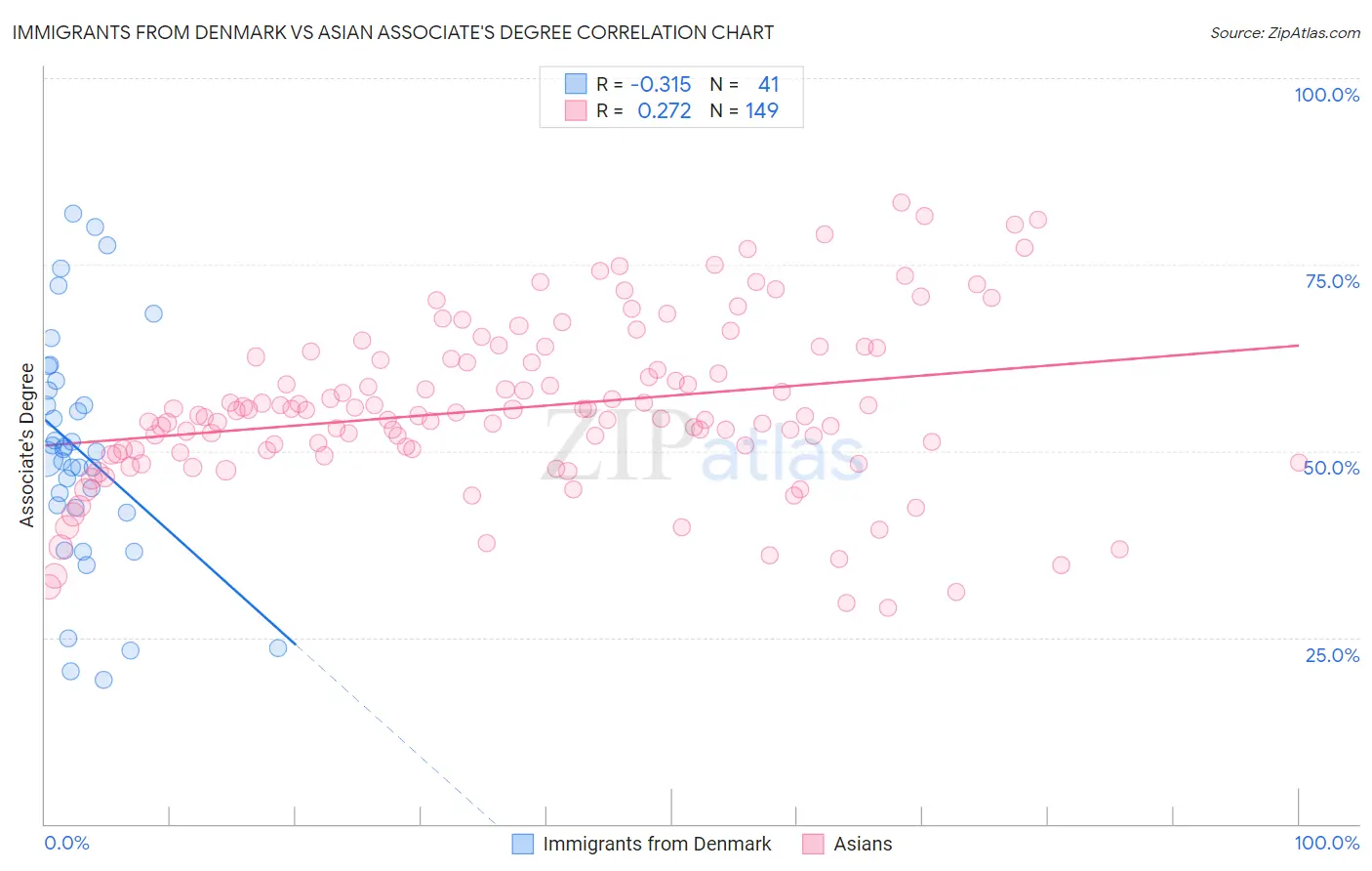 Immigrants from Denmark vs Asian Associate's Degree