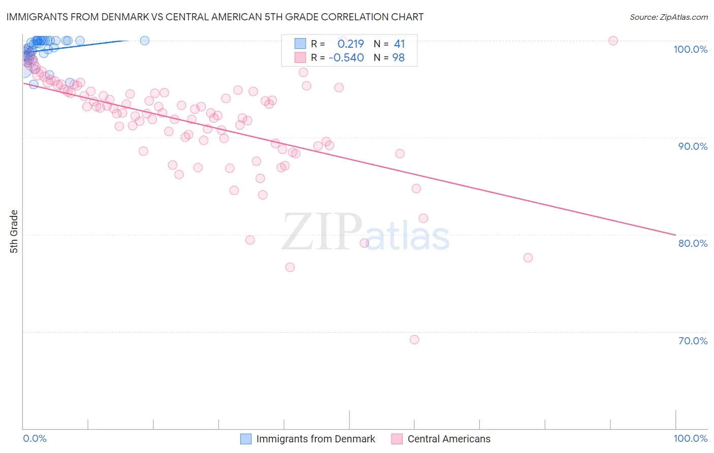 Immigrants from Denmark vs Central American 5th Grade Correlation Chart