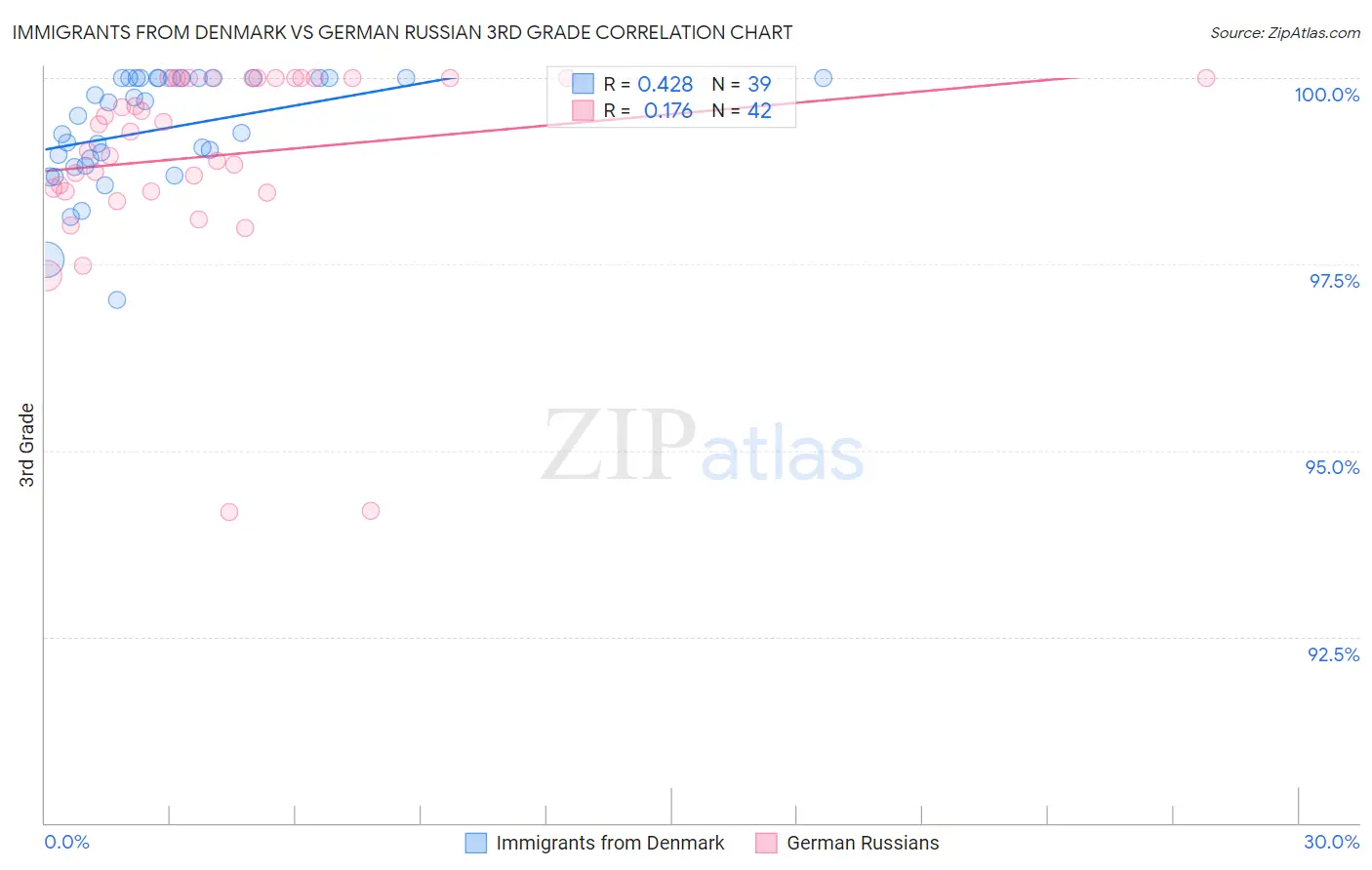 Immigrants from Denmark vs German Russian 3rd Grade Correlation Chart