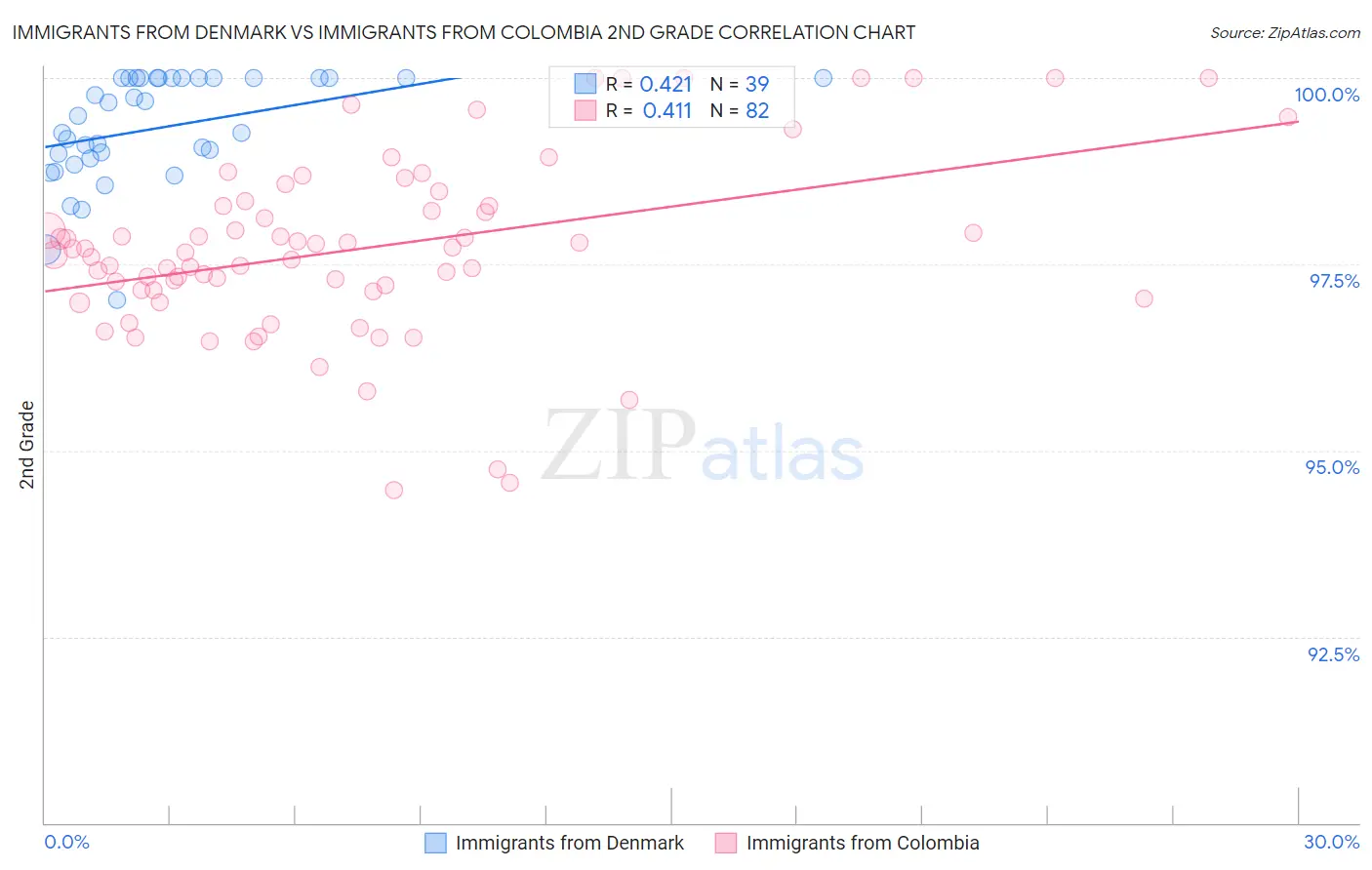 Immigrants from Denmark vs Immigrants from Colombia 2nd Grade Correlation Chart