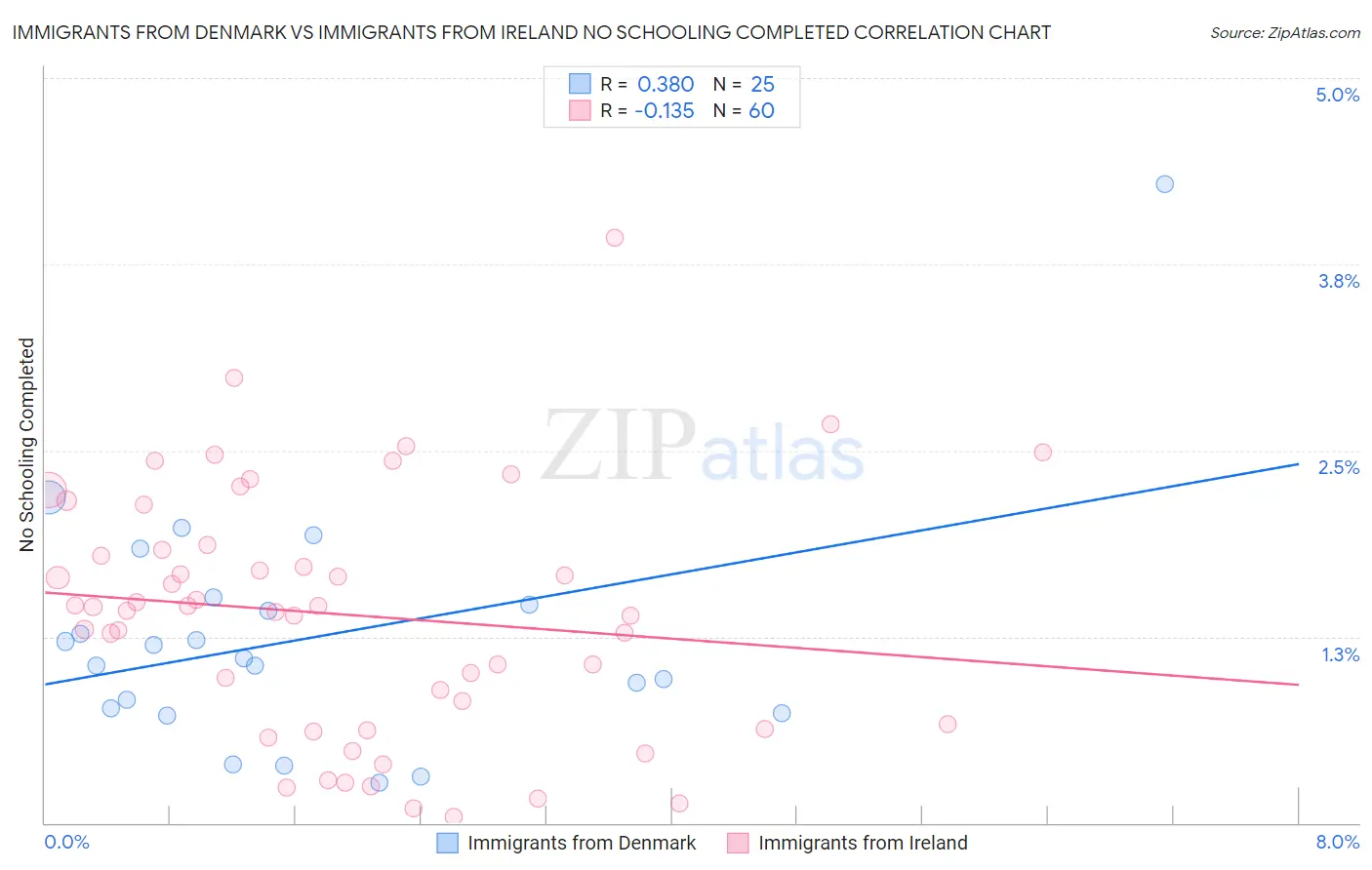 Immigrants from Denmark vs Immigrants from Ireland No Schooling Completed