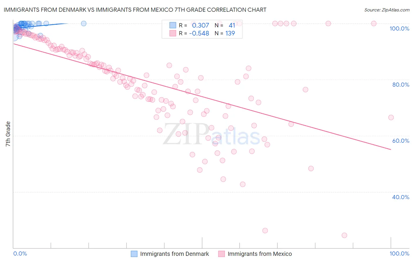 Immigrants from Denmark vs Immigrants from Mexico 7th Grade Correlation Chart