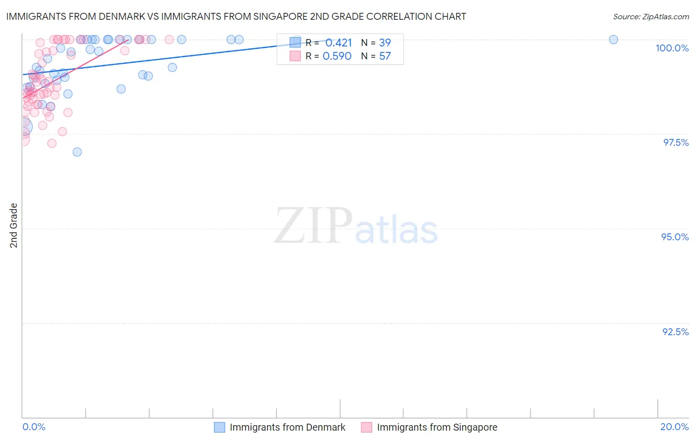 Immigrants from Denmark vs Immigrants from Singapore 2nd Grade Correlation Chart