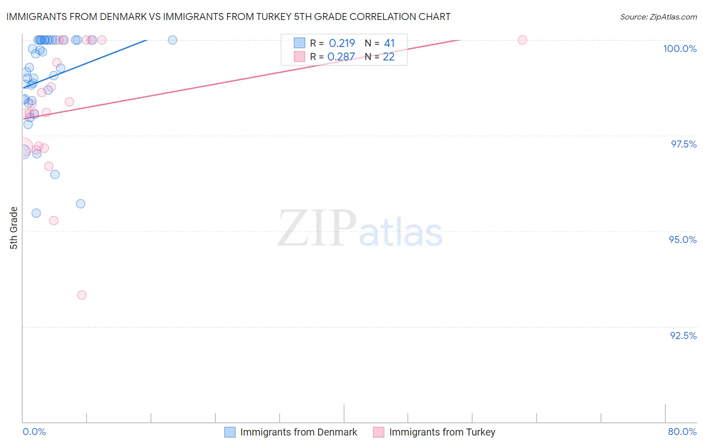 Immigrants from Denmark vs Immigrants from Turkey 5th Grade Correlation Chart