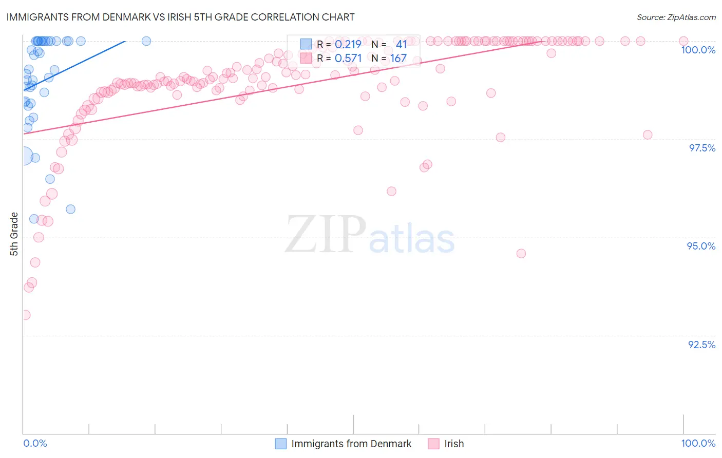 Immigrants from Denmark vs Irish 5th Grade Correlation Chart
