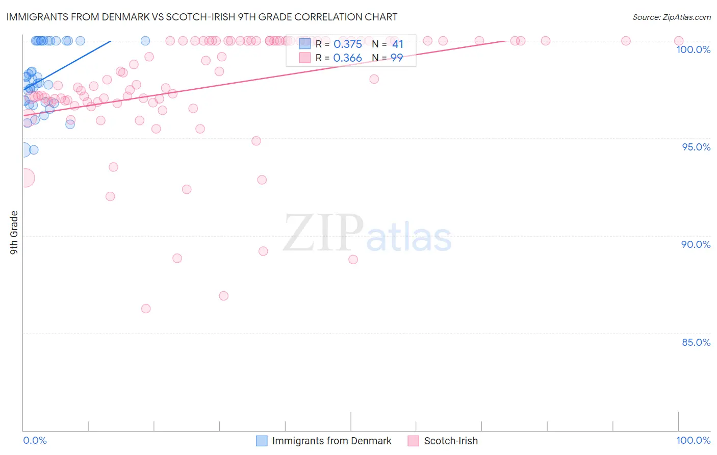 Immigrants from Denmark vs Scotch-Irish 9th Grade Correlation Chart