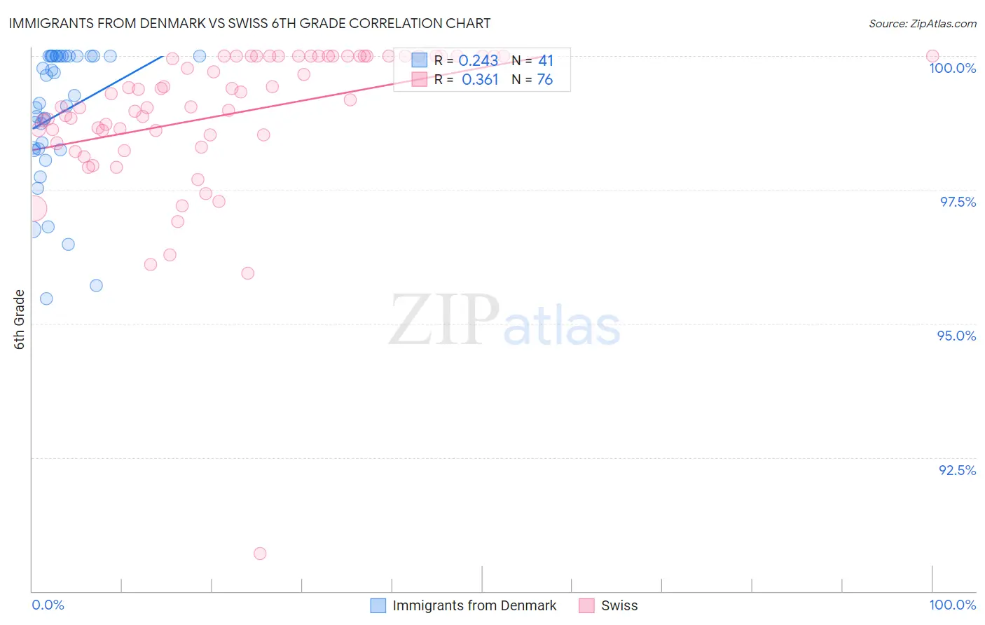 Immigrants from Denmark vs Swiss 6th Grade Correlation Chart