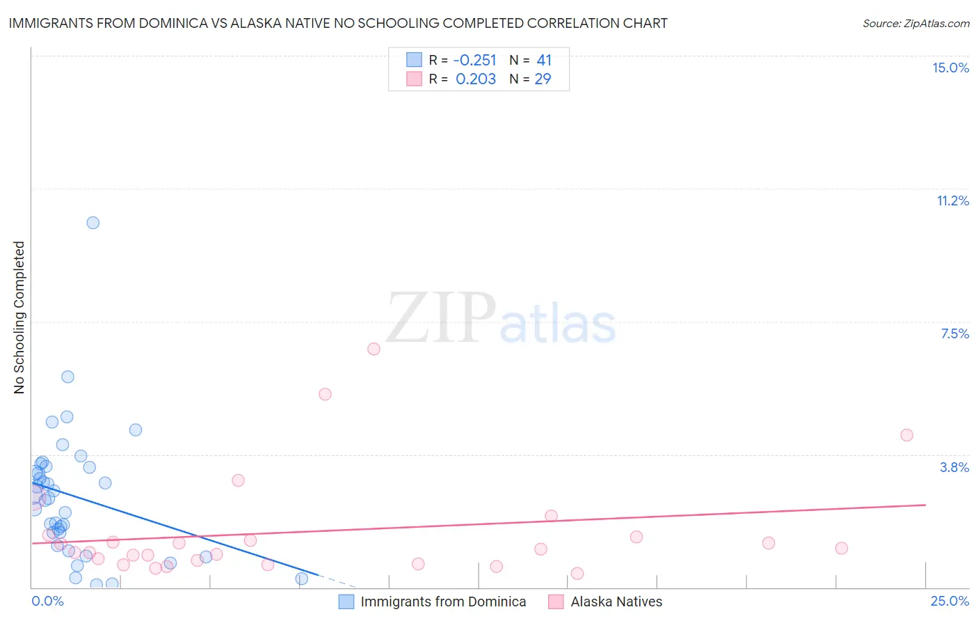 Immigrants from Dominica vs Alaska Native No Schooling Completed Correlation Chart