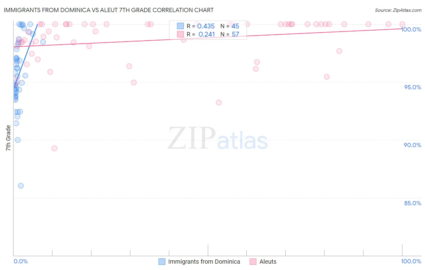 Immigrants from Dominica vs Aleut 7th Grade Correlation Chart