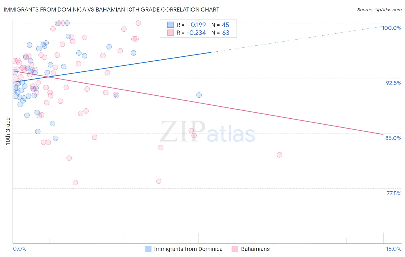 Immigrants from Dominica vs Bahamian 10th Grade Correlation Chart