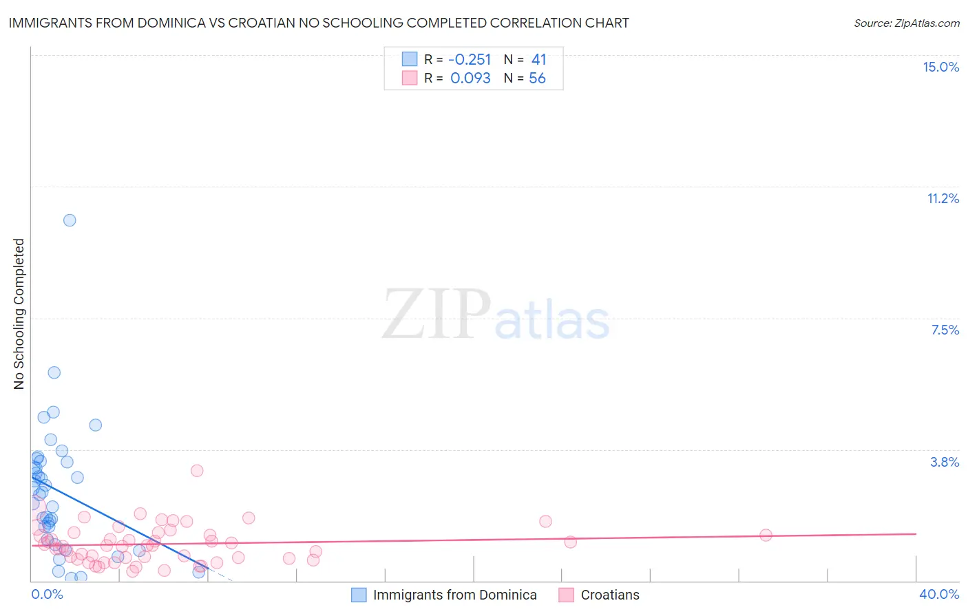 Immigrants from Dominica vs Croatian No Schooling Completed Correlation Chart