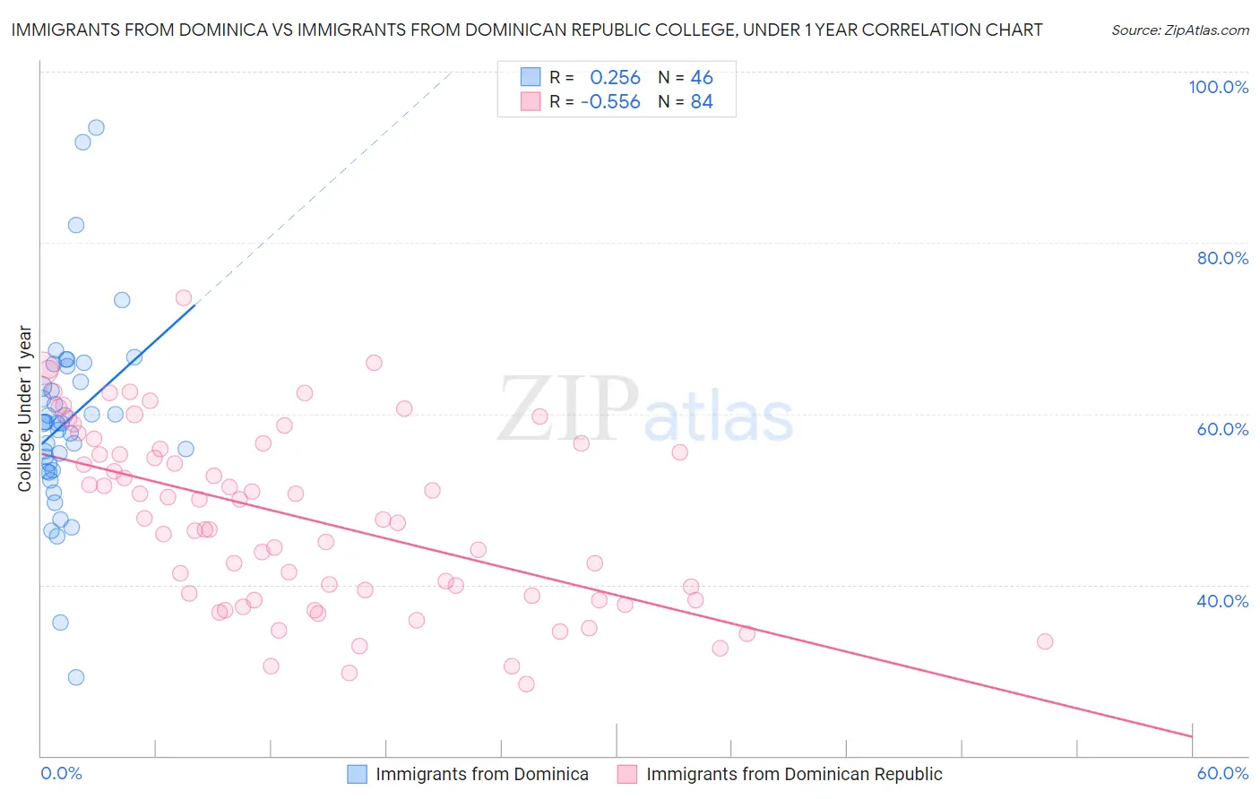 Immigrants from Dominica vs Immigrants from Dominican Republic College, Under 1 year Correlation Chart