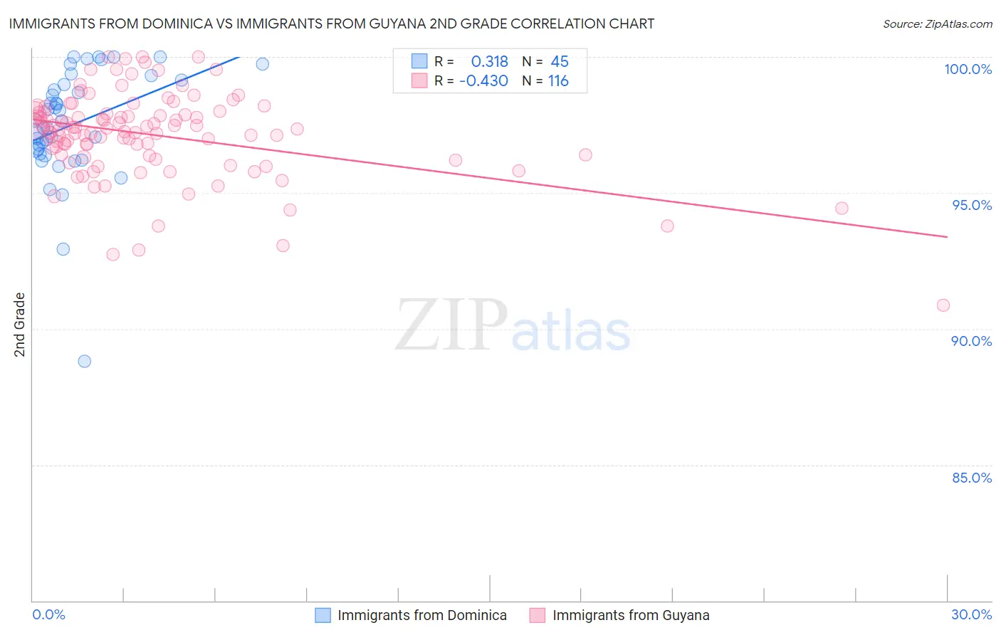 Immigrants from Dominica vs Immigrants from Guyana 2nd Grade Correlation Chart