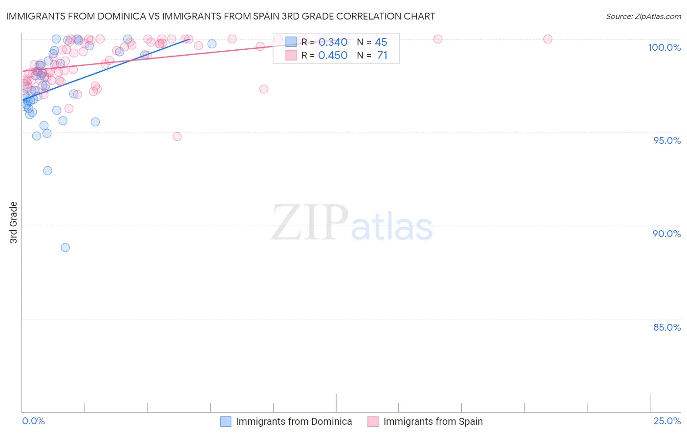 Immigrants from Dominica vs Immigrants from Spain 3rd Grade Correlation Chart