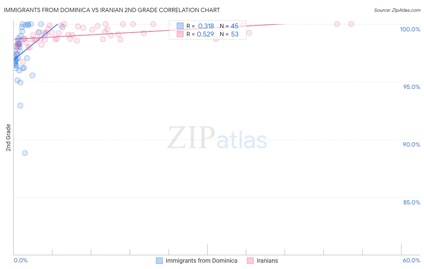 Immigrants from Dominica vs Iranian 2nd Grade Correlation Chart