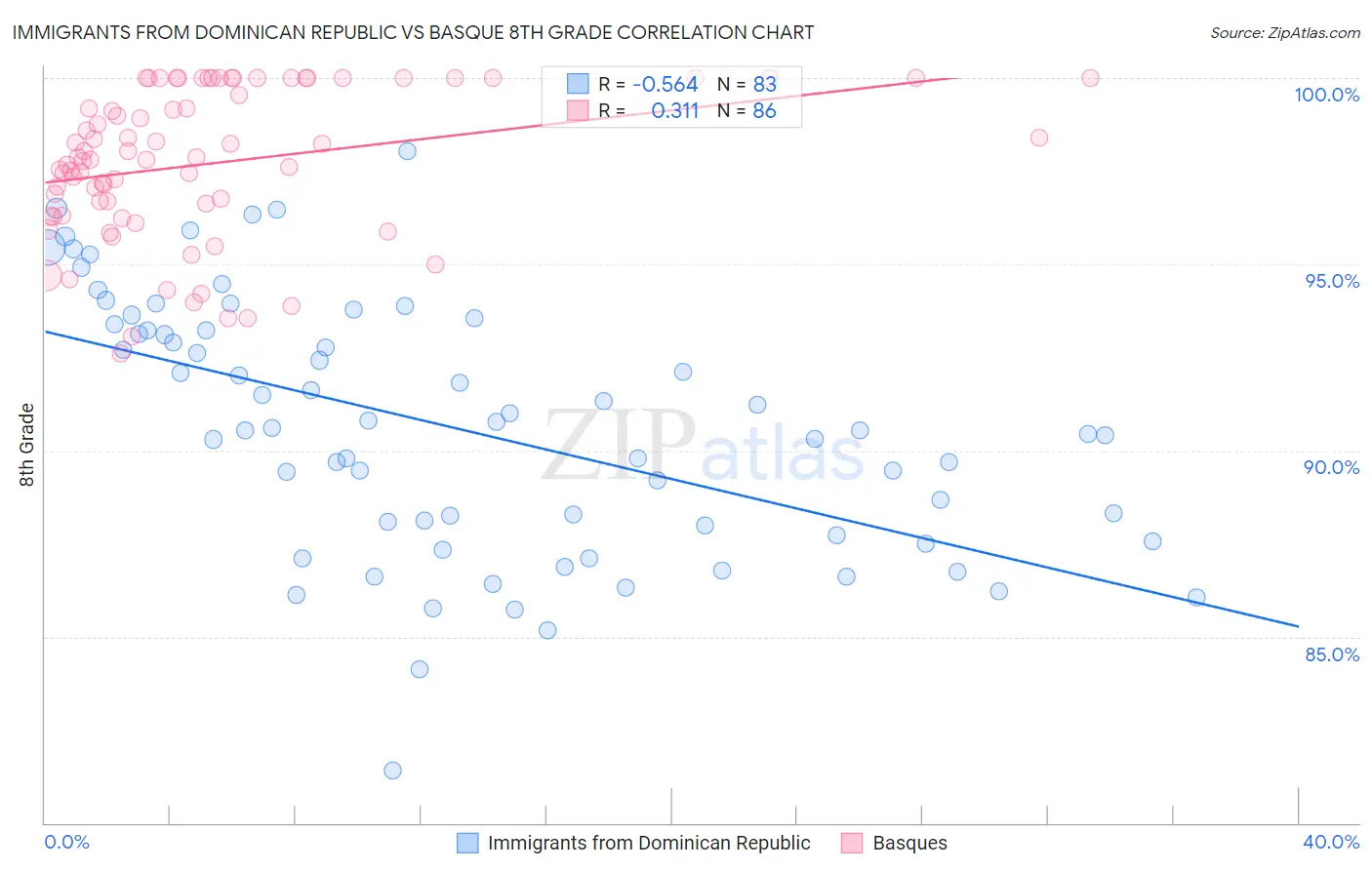 Immigrants from Dominican Republic vs Basque 8th Grade Correlation Chart