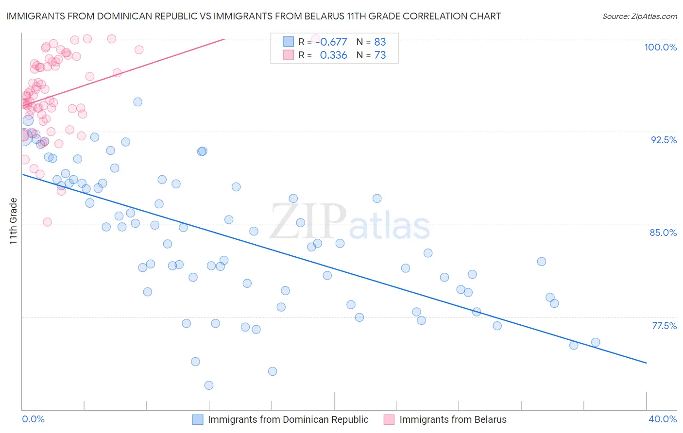 Immigrants from Dominican Republic vs Immigrants from Belarus 11th Grade Correlation Chart