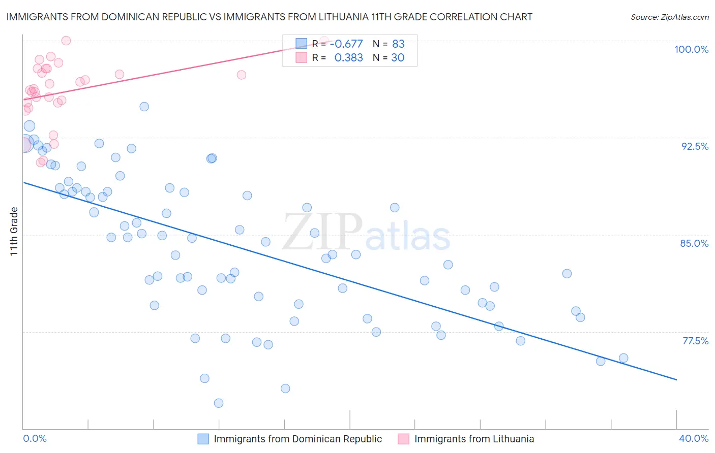 Immigrants from Dominican Republic vs Immigrants from Lithuania 11th Grade Correlation Chart