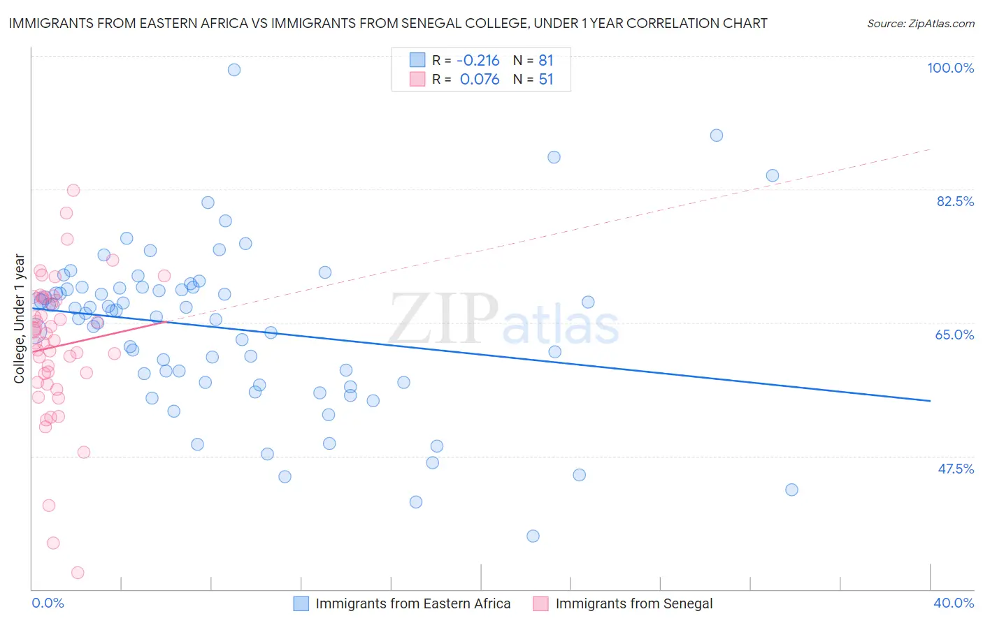 Immigrants from Eastern Africa vs Immigrants from Senegal College, Under 1 year Correlation Chart