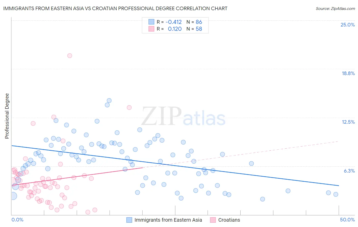 Immigrants from Eastern Asia vs Croatian Professional Degree Correlation Chart