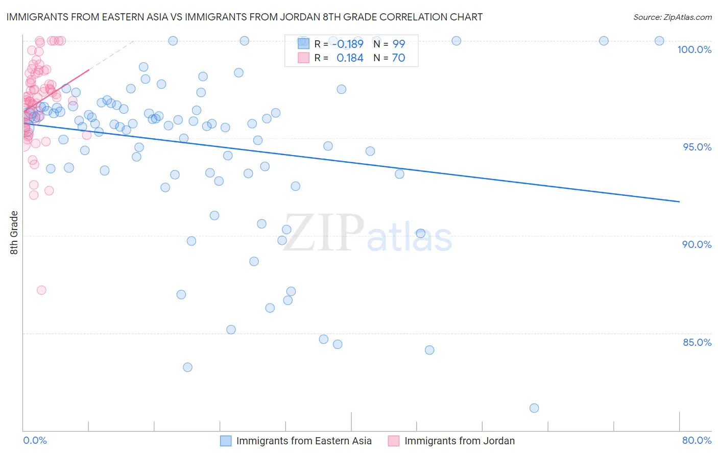 Immigrants from Eastern Asia vs Immigrants from Jordan 8th Grade Correlation Chart