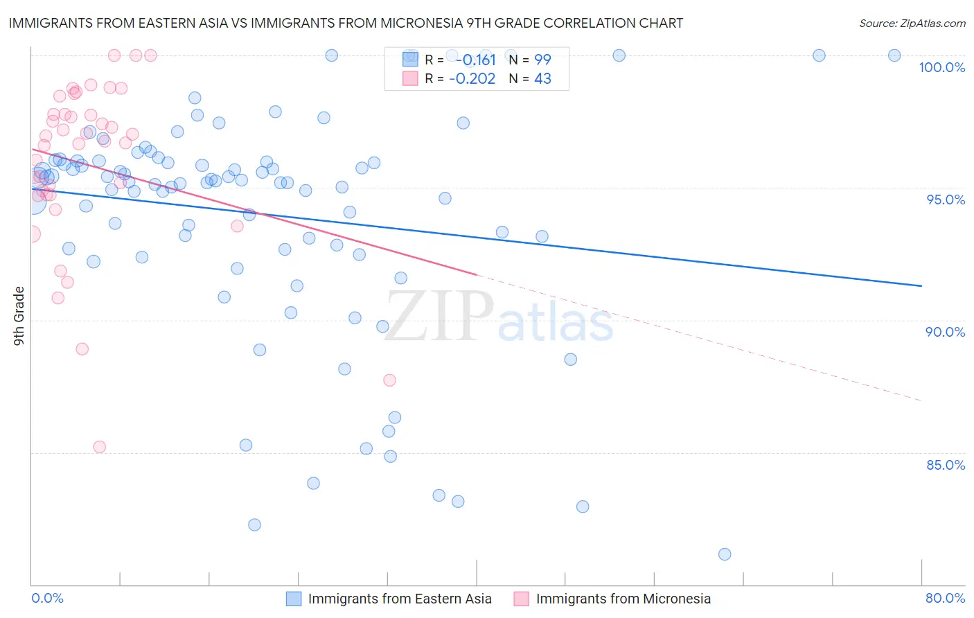Immigrants from Eastern Asia vs Immigrants from Micronesia 9th Grade Correlation Chart